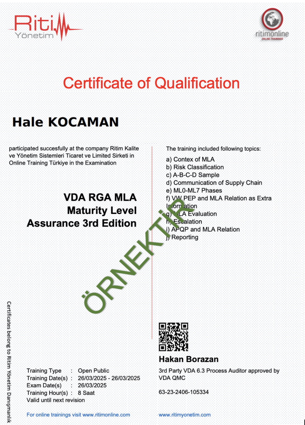 VDA RGA MLA Olgunluk Seviyesi Güvencesi